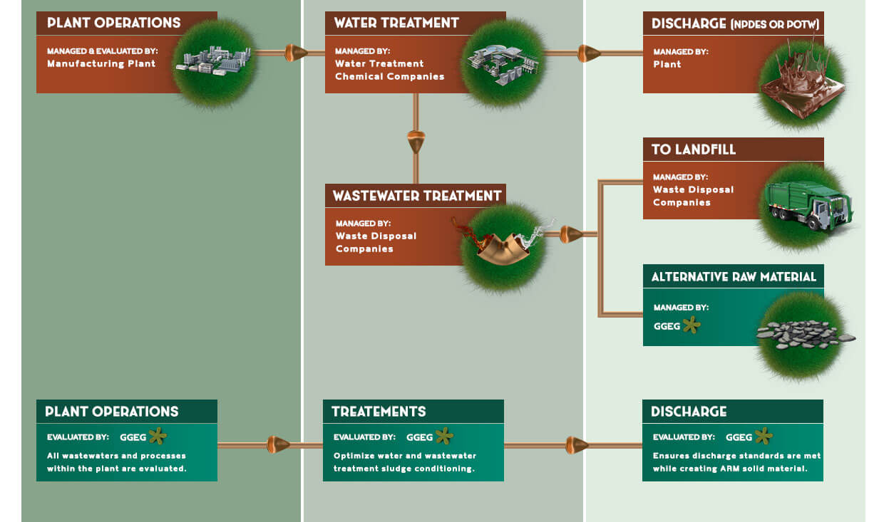Today, industrial wastewater processes are managed by three disconnected groups within a manufacturing facility. We evaluate the entire plant process and recommend solutions including "point source" treatment and alternative treatment methods designed to reduce chemical cost while meeting all discharge standards to produce a sludge viable for beneficial reuse.